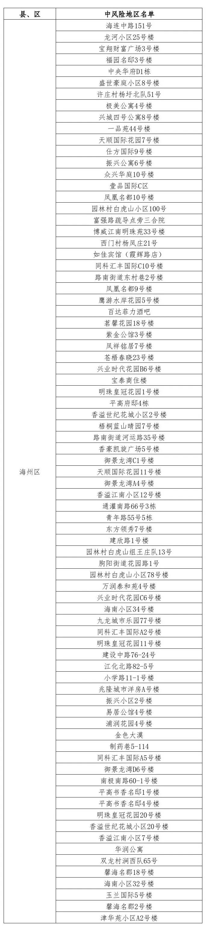 根據國務院聯防聯控機制有關規(guī)定,經市指揮部研究決定,自發(fā)布之日起,對我市部分區(qū)域疫情風險等級進行調整:海州區(qū)眾興華庭7號樓、悅城國際9號樓、香溢世紀花城小區(qū)7號樓、許莊村楊圩北隊75號、極美苑2號樓、頤和花園1號樓、麻紡小區(qū)10號樓、銀城公寓1號樓、新建西路30號樓、仕方國際10號樓、吾悅華府9號樓由中風險地區(qū)調整為低風險地區(qū)。其他地區(qū)風險等級不變。調整后全市現有79個中風險地區(qū)。