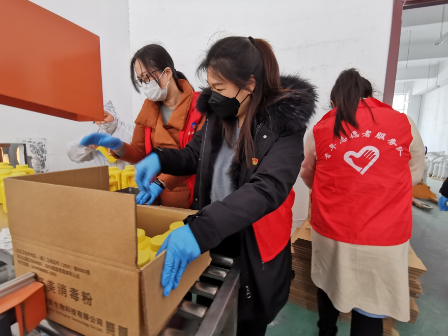 在得知美多利科創(chuàng)園入園企業(yè)永榮生物公司有一批緊急運(yùn)往武漢的消毒粉訂單,工人緊缺的信息,臺北公司青年突擊隊(duì)第一時(shí)間奔赴生產(chǎn)現(xiàn)場,“發(fā)放、裝車、運(yùn)輸”,分工合作,保證效率,確保產(chǎn)品及時(shí)發(fā)送,助力戰(zhàn)“疫”一線。