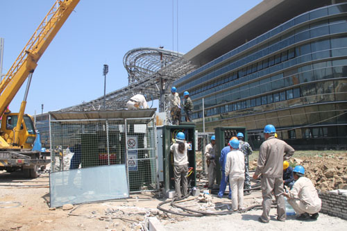 該所在承攬此項工程后,克服施工時間緊、現場地形復雜、交叉作業多等困難,精心策劃、周密部署,嚴格按照工程施工預案,在演藝廣場和美食街地段新增一條10千伏電源,改造兩處10千伏電源進口,敷設5公里10千伏高壓電纜,設置11臺電源分支箱、3臺路燈廂變,安裝5臺400千伏安變壓器,最終形成了一個主供、兩個備用的供電輸送網格局。