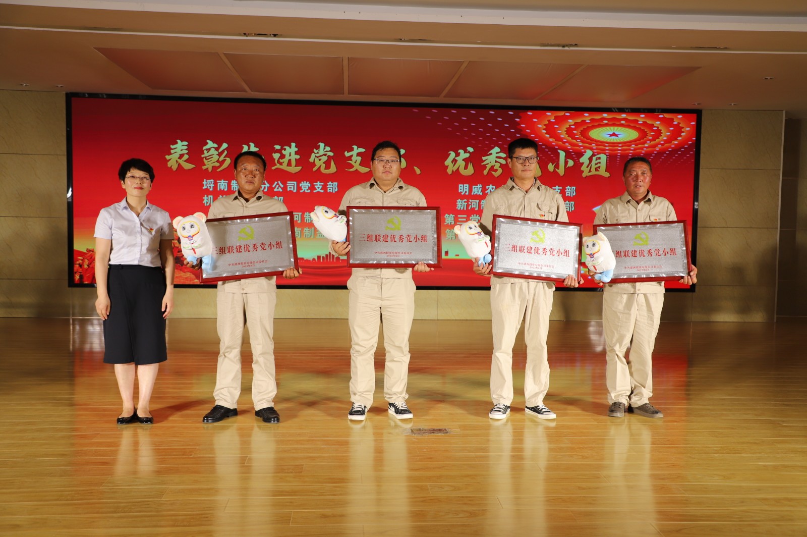 在演出期間,對評選出的先進黨支部、優秀黨小組、“廉潔之星”、優秀黨員和優秀黨務工作者代表進行了表彰,進行黨史類等知識答題活動。(西宣