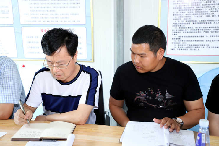 在五灌河碼頭施工現(xiàn)場,副總經(jīng)理古浩光主持會議并聽取了工程施工方、監(jiān)理方、推進(jìn)組三方的工作匯報(bào)。了解碼頭二期工程的進(jìn)度、工程質(zhì)量、工程安全、人員材料設(shè)備進(jìn)場及文明施工等具體情況。對監(jiān)理方、推進(jìn)組相關(guān)成員提出的問題和建議進(jìn)行了現(xiàn)場解決和處理,并在下一步的工作中加以落實(shí),以保障碼頭二期工程的順利進(jìn)行。