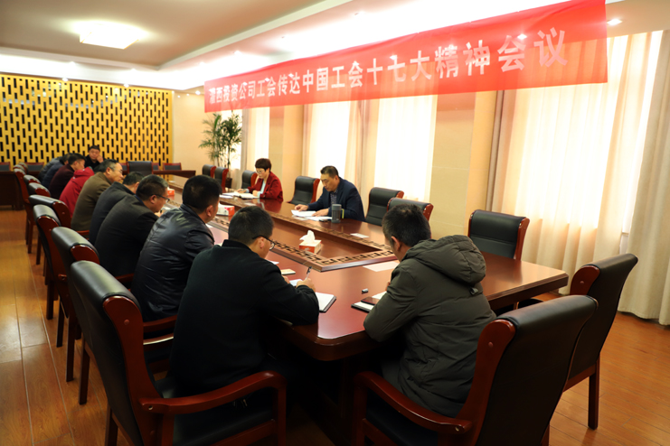11月30日,灌西投資公司工會召開傳達學習中國工會第十七次代表大會精神會議,投資公司工會、各單位分會主席以及女工主任參加了會議。
