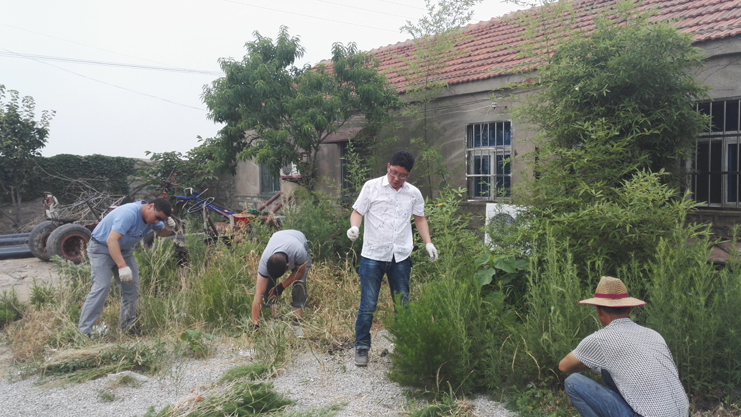 大家用手拔,用鐮刀砍,雖然天氣炎熱,但絲毫阻擋不了黨員們的勞動(dòng)熱情。