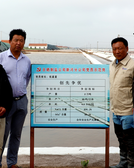 2016 年底,由于祝星星的出色表現,在全公司31個班組長中,他被公司選中擔任原料鹽基地的班長。面對新的班組、新的戰場,他帶領班組全體員工,發揚不怕吃苦、不怕累、大愛擔當、大志拼搏的精神,在短短一年的時間里,使原料海水鹽結晶區灘地面貌就煥然一新,不管是生產管理還是在灘場文明管理上均走在公司的前列。2018 年,為公司創建一流的海水原料鹽基地,他帶領著全體班組成員積極完善“傳統海鹽+新式工藝”的生產模式,大力實施原鹽質量標準化建設,強化生產管理、灘場文明等環節的執行力度,向著生產優質原料鹽1.5 萬噸的目標邁開了新的步伐。