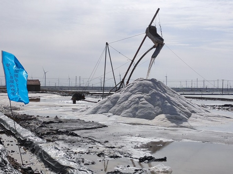 生產服務公司化驗室的工作人員在扒鹽現場取樣,及時跟蹤監測鹽質,確保扒鹽質量達標。該公司今年在扒鹽設備上更換了五寸扒鹽管道。這次扒鹽計劃投入5臺扒鹽機組全部開始扒鹽,為原鹽銷售工作的正常有序開展提供保證。(方士洋)