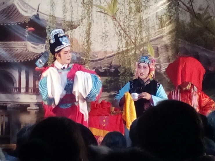 優美的身段、委婉的唱腔,在這幾個小時的時間里,淮海劇團的演員為觀眾送上了淮海戲《狀元與乞丐》、《三拜堂》。這些曲目通俗易懂,老少皆宜,深受居民喜愛,演員們的精彩表演也博得了觀眾的一致好評,有居民說“他們的演出給我們帶來了活力,精彩的演出令人難以忘記,可以說是為我們獻上的一臺精彩戲曲大餐。”(唐蕾榮)