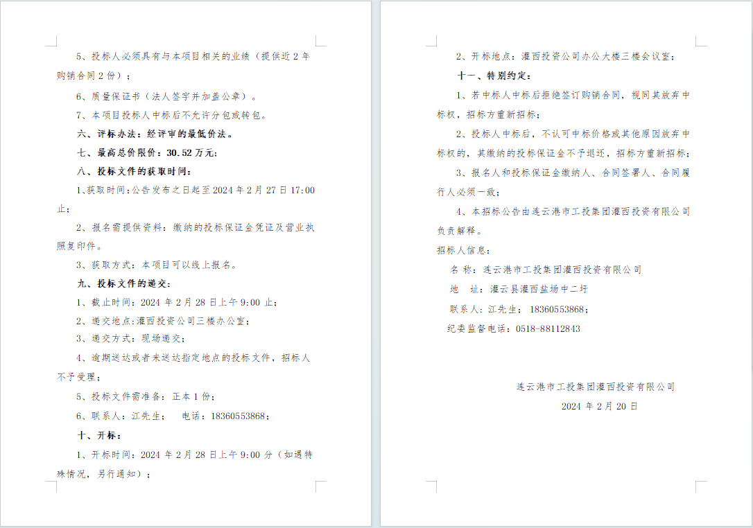 連云港市工投集團灌西投資有限公司2024年度員工勞保服采購項目邀請招標公告