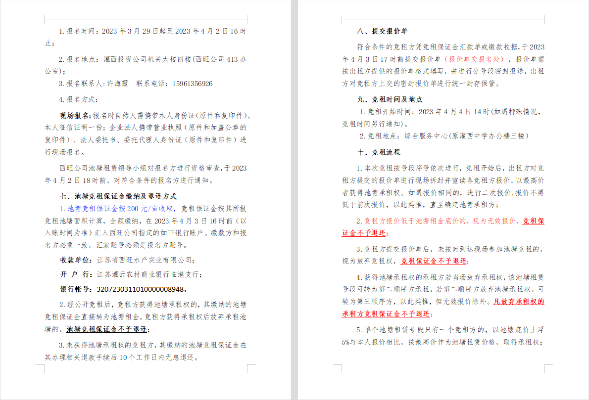 江蘇省西旺水產(chǎn)實業(yè)有限公司2023年度淡水養(yǎng)殖池塘公開競租第二次公告