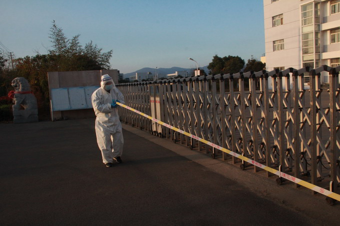 廠區正門設置警戒