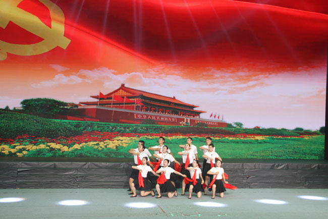 此次文藝匯演在歌舞《不忘初心》中拉開序幕,2名主唱用高亢、嘹亮的歌聲,深情訴說著對祖國的崇敬與熱愛。男、女歌手唱功扎實,臺風穩健,贏得在場觀眾的陣陣掌聲。伴舞的16名舞蹈演員身著白衣,手握紅旗,用優美的舞姿、整齊的動作,盡情描繪出了每一名工投兒女不忘初心、砥礪奮進的豪情!配合精心制作的視頻背景,《不忘初心》作為開場節目受到了到場觀眾的一致好評。