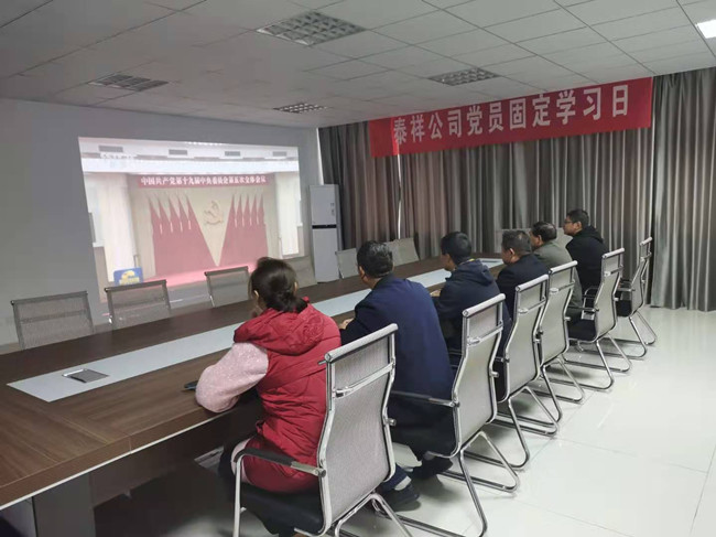 ? 11月20日下午,泰祥公司黨支部結合固定學習日,組織黨員及員工,收看學習貫徹黨的十九屆五中全會精神。將貫徹好黨的十九屆五中全會精神作為一項重要政治任務,切實把思想和行動統一到全會精神上來,在工作崗位中建功立業、奮勇爭先。