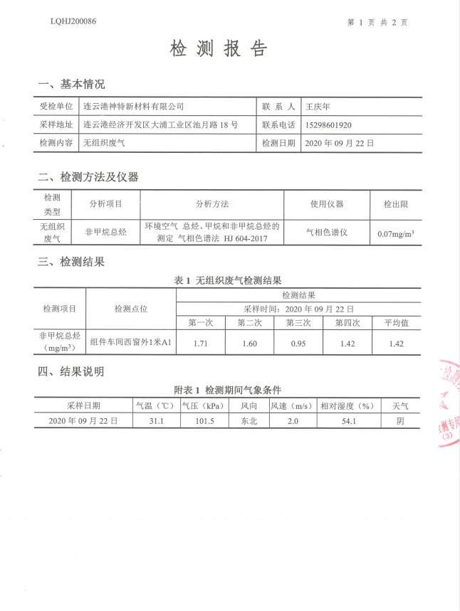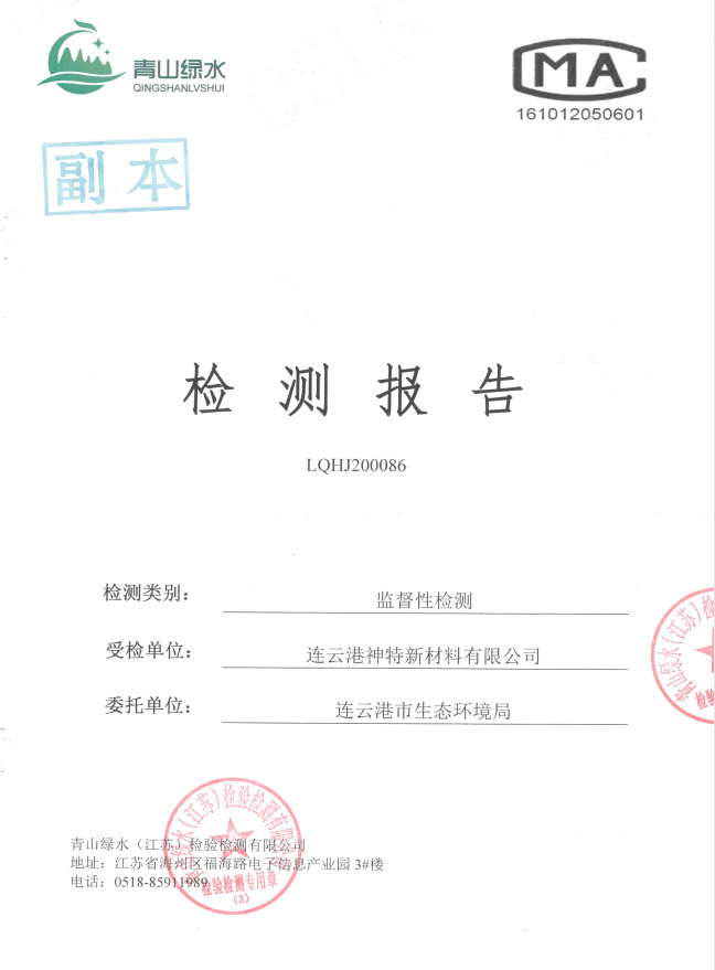 神特公司檢測報告公示
