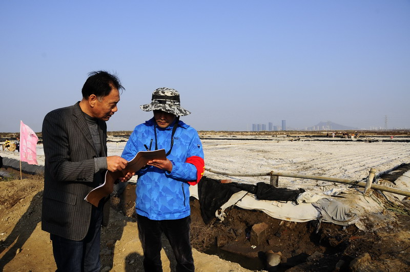 ▲楊善革對扒鹽作業現場安全生產提出要求
