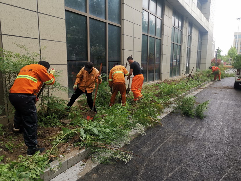 511日上午,春雨連綿,為確保按時完成徐圩消防大隊的綠化工作,益豐園林分公司組織綠化工人冒雨加班加點進行苗木補栽補植,同時按客戶需求進行高規格修剪、除草等各項工作。