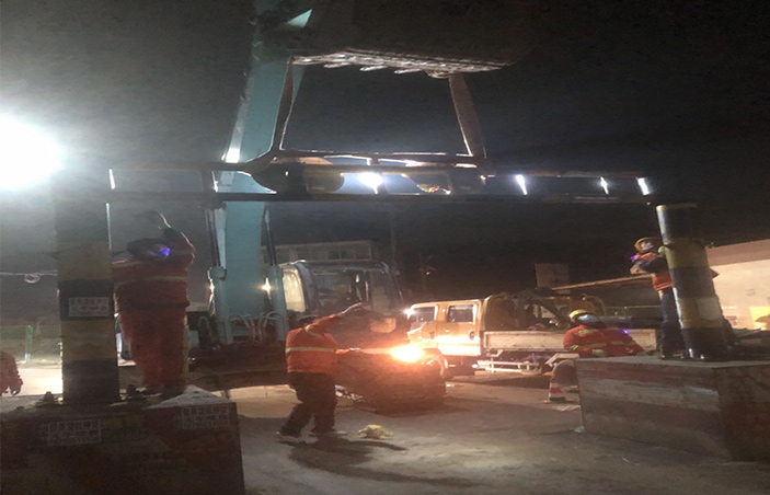 本次施工作業(yè)前,該公司提前報(bào)備交警部門,科學(xué)設(shè)計(jì)施工方案,合理安排作業(yè)時(shí)間,確保安全生產(chǎn)工作。施工人員到達(dá)現(xiàn)場(chǎng)后,首先維持現(xiàn)場(chǎng)秩序,在東山閘兩端擺放安全警示標(biāo)志,專人指揮車輛繞行。在挖機(jī)的配合下,工作人員有序開(kāi)展擴(kuò)寬施工作業(yè),王緒明負(fù)責(zé)吊掛安全吊帶、指揮限寬墩擴(kuò)寬,王守濱負(fù)責(zé)現(xiàn)場(chǎng)限高架焊接,現(xiàn)場(chǎng)管理員單華祥負(fù)責(zé)指揮擴(kuò)寬作業(yè),施工現(xiàn)場(chǎng)井序有然,大家各司其職,任勞任怨,發(fā)揚(yáng)鹽場(chǎng)人不怕吃苦精神,經(jīng)過(guò)近3小時(shí)的緊張作業(yè),高質(zhì)高效完成限高架限寬墩擴(kuò)寬施工作業(yè),道路恢復(fù)安全暢通。(李濤)